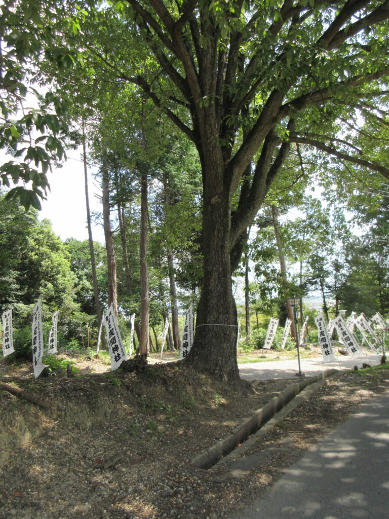 駐車場から坂を下り、左に曲がって道沿いに行ったところに大きな木がありました。