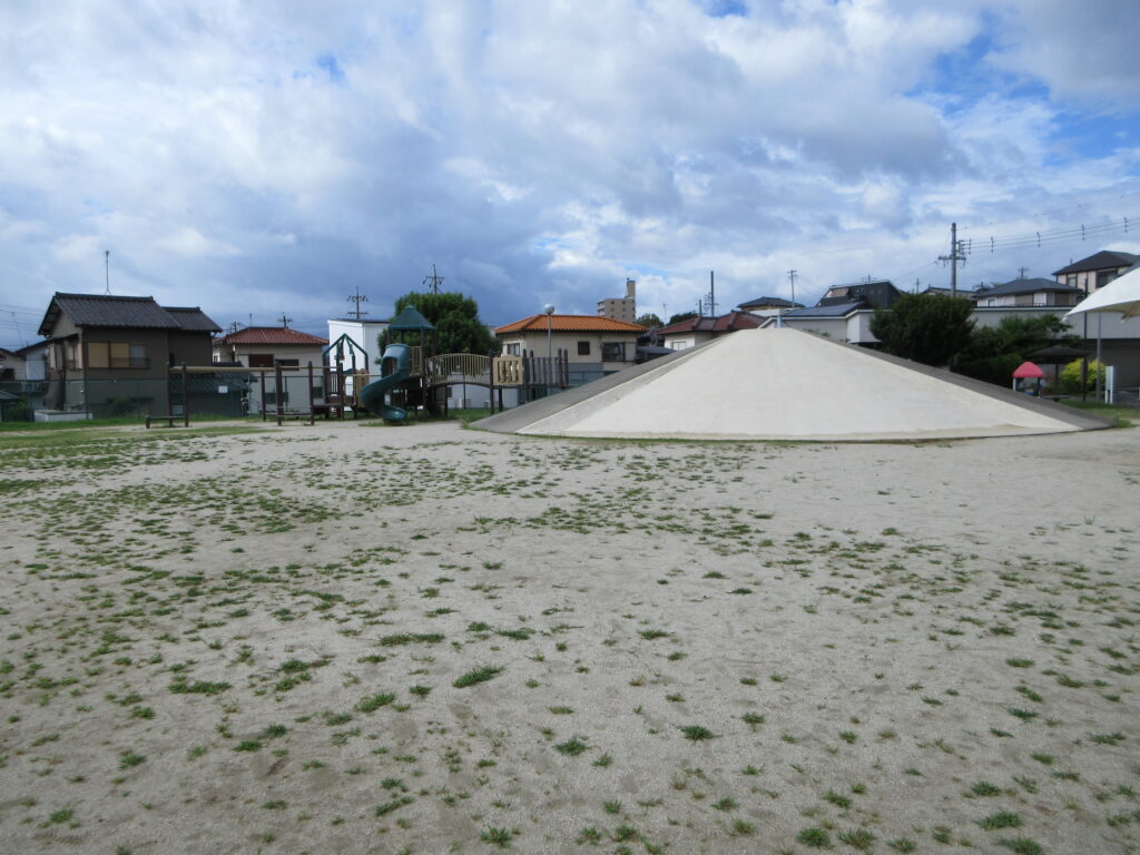 この公園は、入口の所にある富士山型のすべり台が特徴ですね。